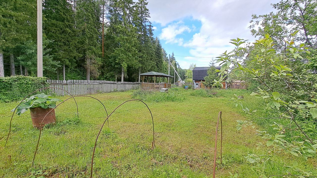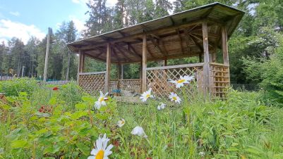 Участок ровный, правильной формы, сухой, граничит с лесом, что создает свою атмосферу и уединение. Есть колодец. хоз. постройки , парник, летняя кухня, зона отдыха с красивой и добротной беседкой.