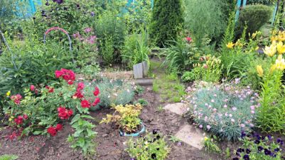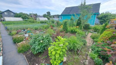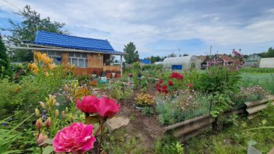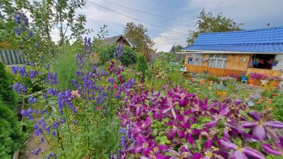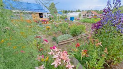 Большое количество насаждений: яблони, малина, смородина, слива, клубника, туи, цветы, цветы... море цветов!!!