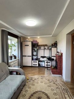 На кухне и в комнатах поклеены свежие обои, потолок подвесной в комнатах, пластиковые панели в остальных помещениях. Санузел в кафеле (стены и пол). На полу линолеум.