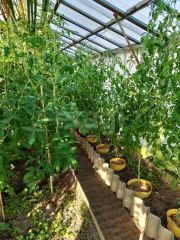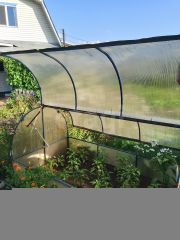 На участке яблони, ирга, малина, смородина, крыжовник, ореховое дерево.