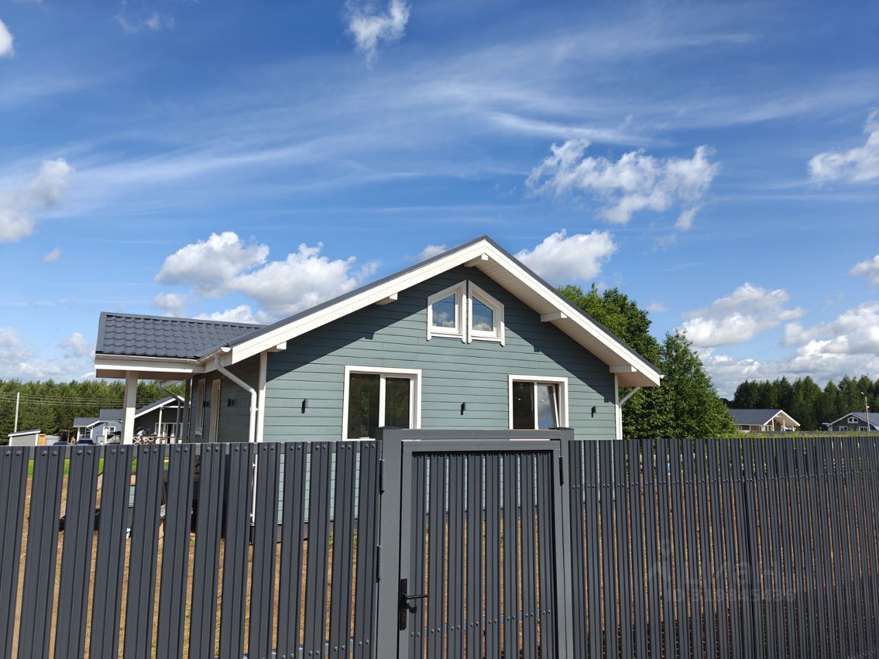 В стоимость входит: земельный участок, хоз.блок на участке, лицевая линия забора, каркасный дом на бетонных сваях с системой теплых полов, чистовая отделка, кухонный гарнитур с бытовой техникой (мойка, смеситель, варочная панель), водонагреватель, отделка пола - кварц винил, отделка санузла - керамогранит. Канализация заведена, скважина 32 м.
