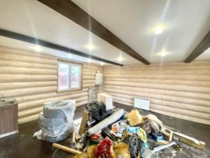 разводка труб по дому, закуплены батареи, расширительный бак, электрический водонагреватель, проведена медная электро проводка по всему дому и выведена в основной блок у входа, так же закуплена вся новая сан техника в санузел - стеклянная душевая кабина, унитаз.