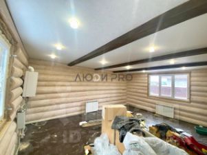 *В одной из комнат в доме сделан натяжной потолок, установлены экономичные светильники.