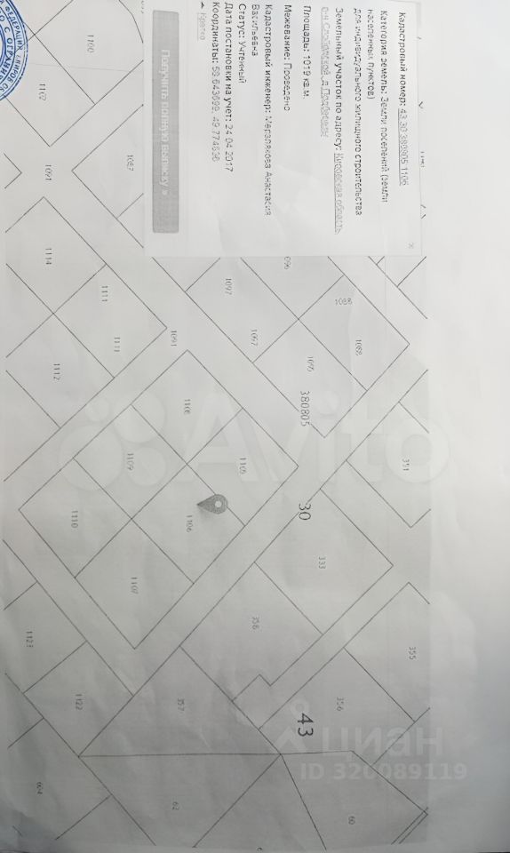 Кадастровый номер участка 43:30:380805:*** указал продавец