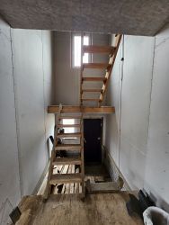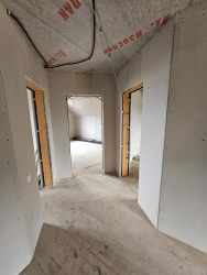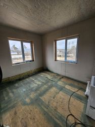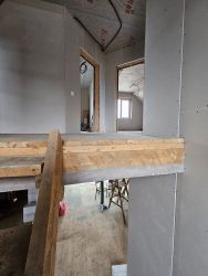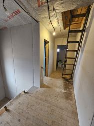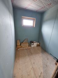 - Проложена электрика внутри дома, стены обшиты гипсокартоном под шпаклевку