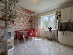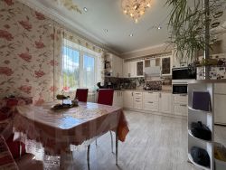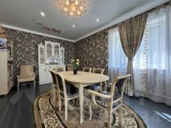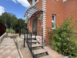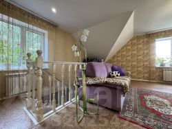 - В доме выполнен современный ремонт: качественные ламинат и обои. Окна - пластиковые стеклопакеты. Санузлы - керамическая плитка. Конструктив лестницы на 2 этаж - массив из сосны, ограждение лестницы - перила.