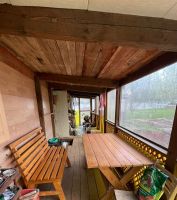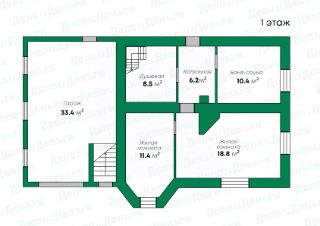 Второй этаж: материалы стен - бревно, кухня-гостиная с эркером, просторная спальня, туалет.