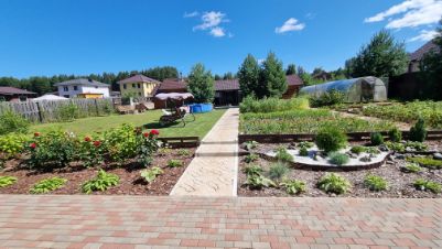 На участке грамотно спланирован ландшафтный дизайн вмещает все необходимое для приёма гостей и семейного отдыха:
