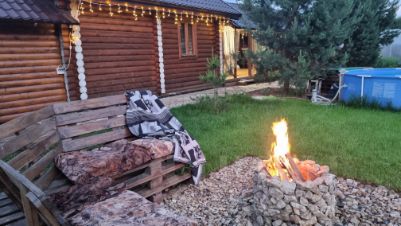 -рубленная баня с отдельной парилкой и комнатой отдыха, выходом на каркасный бассейн