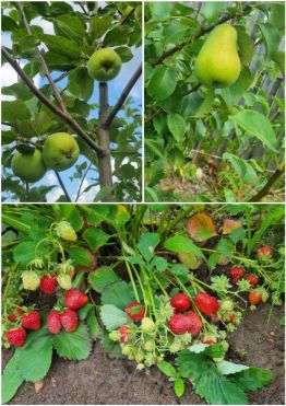 -на участке растут плодовые ягодные деревья и кусты (яблони, груша, вишня, смородина, клубника)