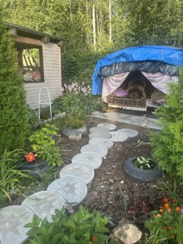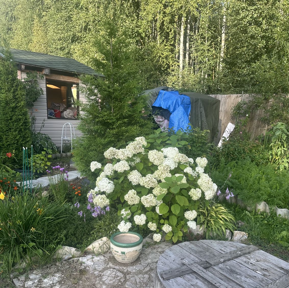 На участке 3 теплицы, летний душ, очень много выложено плиткой дорожки, беседка деревянная, каркасная баня. Лицевой забор из профнастила. На участки посажены яблони столбовые, груши, вишня, слива, крыжовник, красная и черная смородина, малина, черноплодная рябина, взрослый орешник с орехами. Продажа без хвойников.