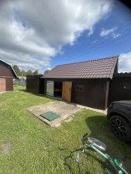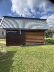На участке: Баня из рубленного бревна 6*6, 2 гаража под авто и технику, хоз блок и сарай для хранения дров из профнастила.