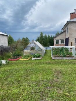 посадки овощных культур и теплица, остальное газон.