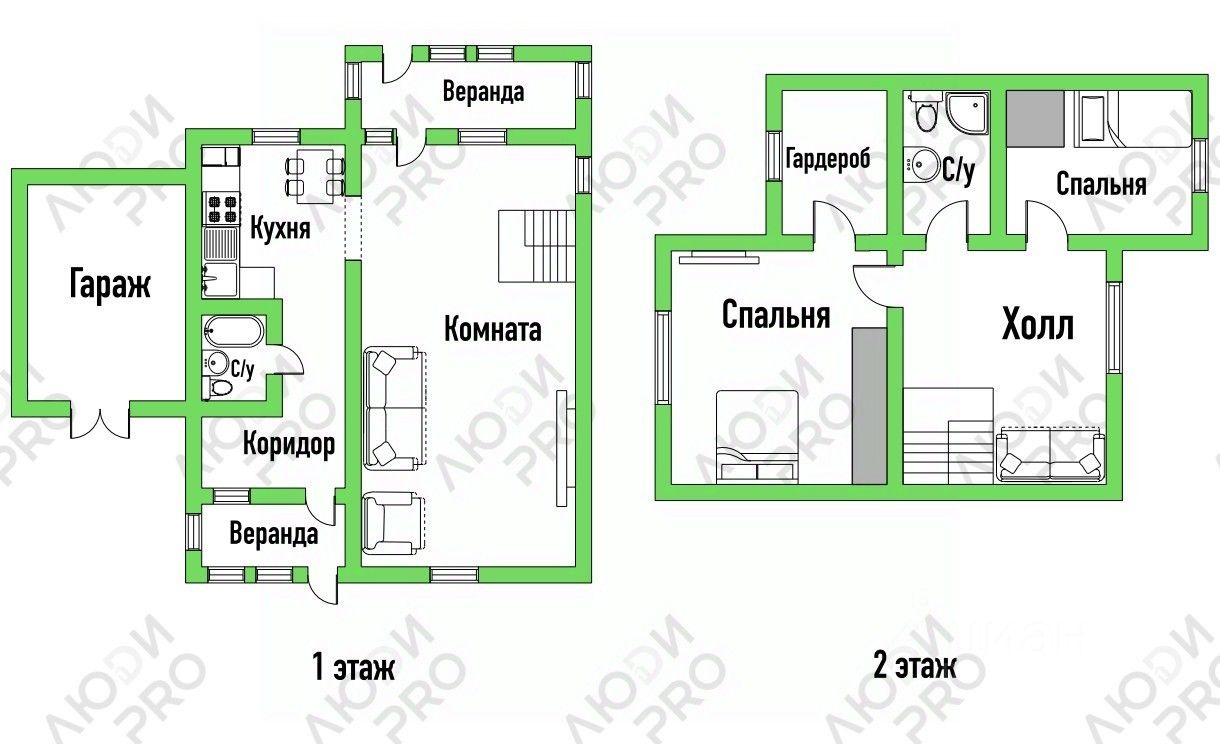 - На 2 этаже: холл с диваном, установлен кондиционер, две спальные комнаты, гардеробная, санузел с душевой кабиной.