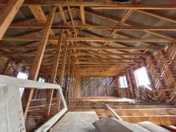 * Дом построен по каркасной технологии, фундамент - ленточный (9 м.*10 м.), крыша - профнастил, окна - пластиковые стеклопакеты. Общая площадь: 98,7 кв. м.