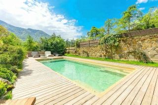 Дом оборудован всем необходимым для комфортного проживания. В нем имеется 6 просторных спален, гараж на 6 автомобилей, круглогодичный бассейн, баня и зона для мангальных посиделок. Это идеальное место для отдыха как в летний, так и в зимний периоды.