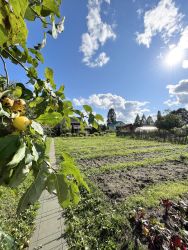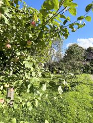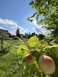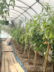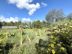 Участок - цветущий сад: все насаждения в активном плодоносящем состоянии (яблони, вишня, крыжовники несколько видов, груши, помидоры, перцы, огурцы и мн др).