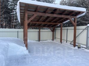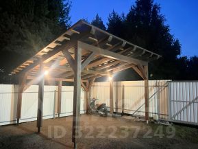 - Навес для автомобиля из бруса с кровлей из монолитного поликарбоната размером 5,5м х 4м