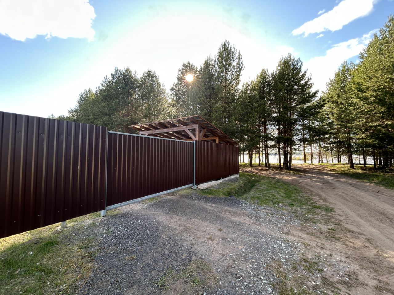 По периметру забор из профнастила, откатные автоматические ворота с пультом дистанционного управления.