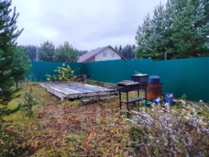 вместительный хозблок и вольер для собаки или птиц. Площадка под вольером забетонирована, можно увеличить и на этом месте построить гараж.