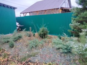 ровный ухоженный участок 8,1 сотки огорожен металлическим забором с автоматическими воротами, парковка как минимум для 2 автомобилей.