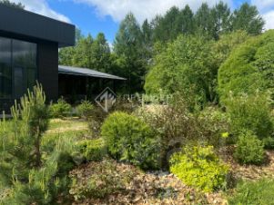 Ухоженный участок, посажены березы, ели, туи, ивы,сосны. Из плодовых: вишни, груши, яблони. Кустарники: смородина. малина, ежевика.