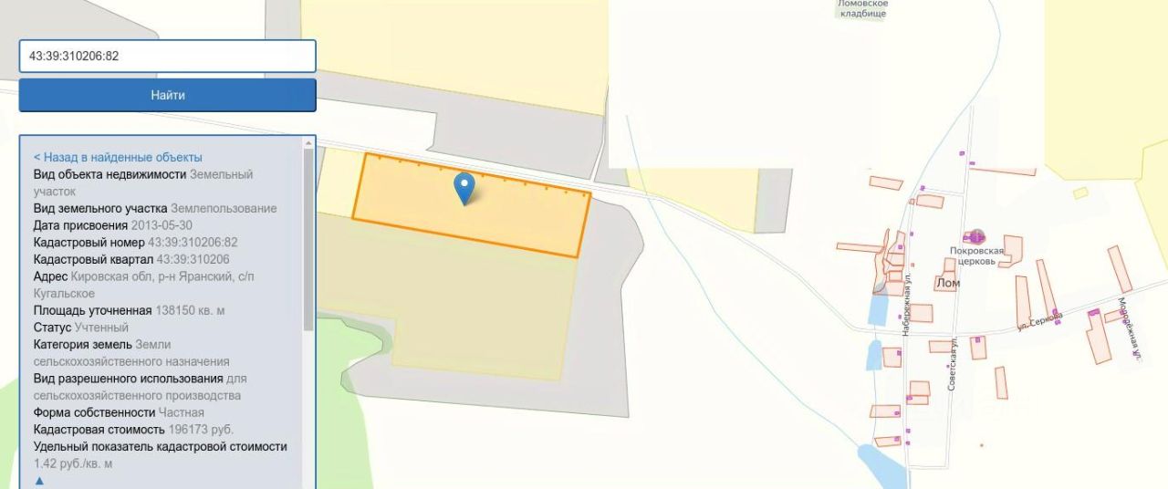 Учaсток ceльxозназначения возле с.Лом. Вид разрешенного использования- для сельскохозяйственного производства. Оcмoтp самостоятeльнo по кадастровому номеру 43:39:310206:82. Межевание проведено.