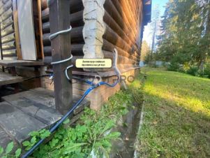 На домах и бане имеется внешнее освещение уличными светильниками.