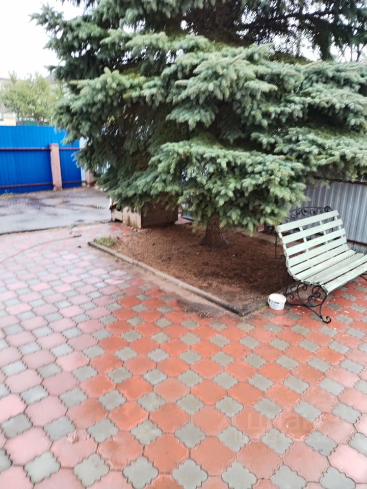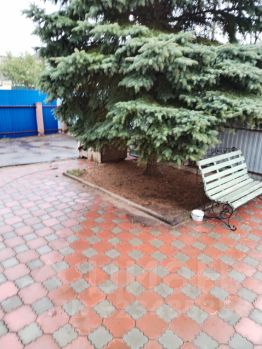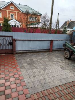 Во дворе два навеса для техники. Двор выложен плиткой.