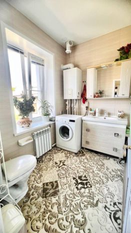 коммуникации: газ, скважина (своя вода), электричество, канализация, 2хконтурный газовый котел (отопление + горячая вода);