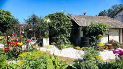 участок облагороженный, есть садово-хозяйственный инвентарь, плодовые деревья, цветы;