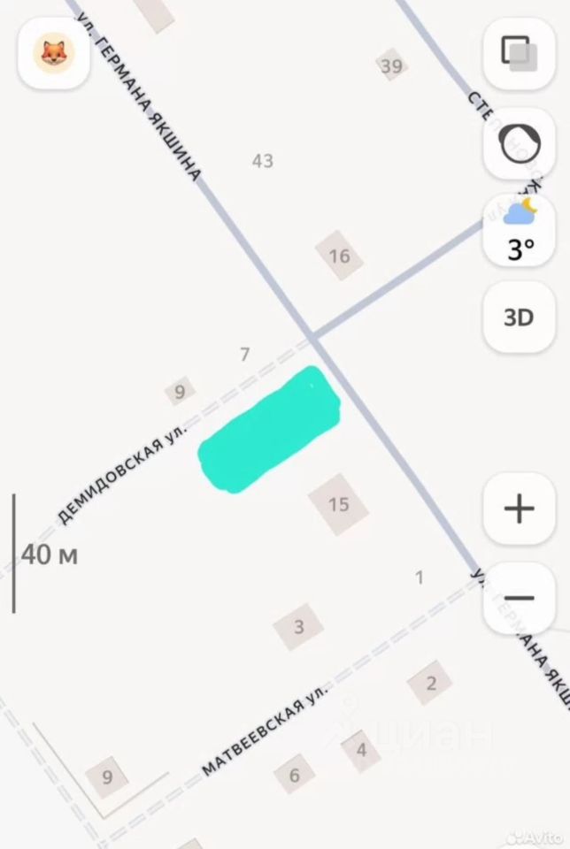 Участок ровный, правильной прямоугольной формы. Межевание сделано, удобное расположение, в середине слободы. Можно сделать 2 подъезда, тк участок находится на перекрёстке улиц Германа Якшина и Демидовская. По слободе проведен газ, уличное освещение.
