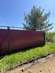 На участке построены баня и беседка. Установлен новый забор по всему периметру, есть ворота и парковочные места для нескольких машин.