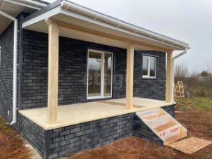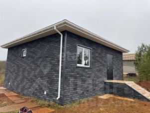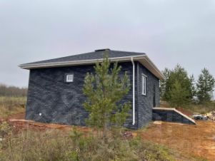 Дом возведен по проекту с применением качественных материалов: каркас из сухого пиломатериала, надежная фасадная плитка и ламинированная черепица известных производителей.