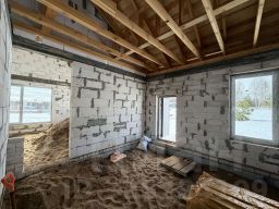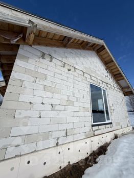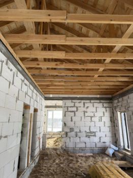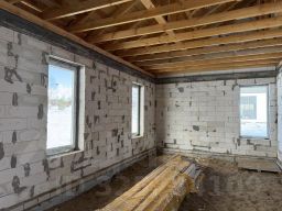 Дом из блоков, Фундамент -железобетонные сваи с монолитным ростверком(есть сертификат качества). Полы на песчаной подготовке с утеплением. Крыша утеплена, мягкая черепица.