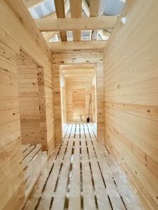 Дом собран на "SilaRex" ( система пружинных крепежей, предназначенная для надежного и долговечного соединения брусьев).