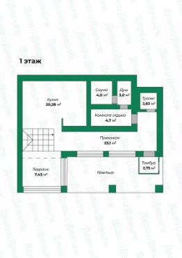 - 1 этаж - 68.0 кв. м. - прихожая, кухня-гостиная, санузел, сауна, комната отдыха;