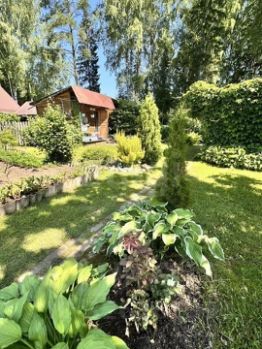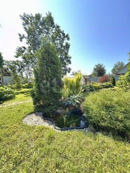 На участке высажены разнообразные декоративные деревья и кустарники, включая туи, можжевельники, розы, хвойные породы и многие другие цветы и многолетники. Территория благоустроена альпийскими горками, декоративным водоёмом и аккуратно продуманными дорожками.