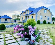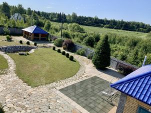 На территории 2 капитальных отдельностоящих гаража (один с подземным погребом), большая баня из сруба 9х5м, беседка 9х4м, курятник, вольер для собаки, 2 теплицы.