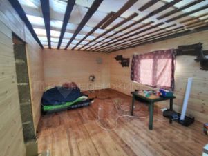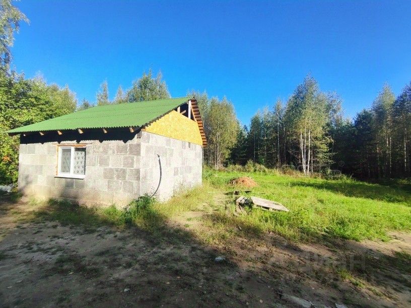 Дом в черновой отделке. Материал — арболитовые блоки, кровля-ондулин, фундамент ленточный с монолитной ж/б плитой 22 см.
