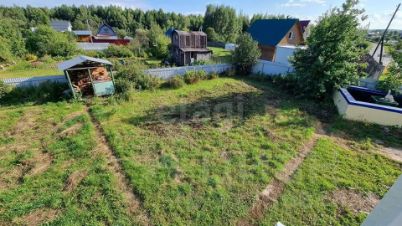 Есть уличный колодец из бетонных колец (на полив), хозблок для хранения инвентаря, теплица (металлический каркас на фундаменте), беседка и фундамент под баню - бетонная плита.
