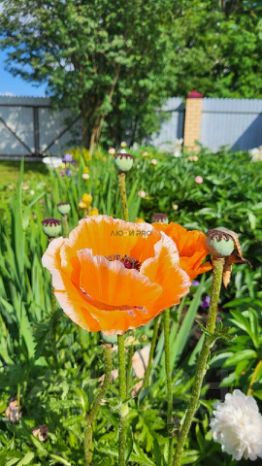 земля полностью обработана (из насаждений есть все виды ягодных кустарников + виноград, яблони, вишни, масса цветов)