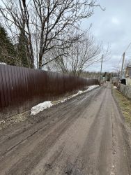 Участок огорожен забором из профнастила с воротами, для заезда авто.