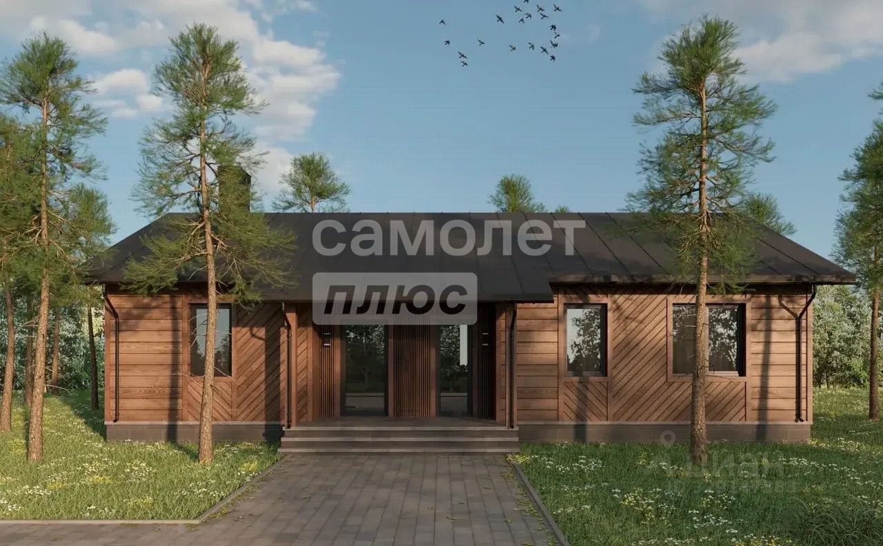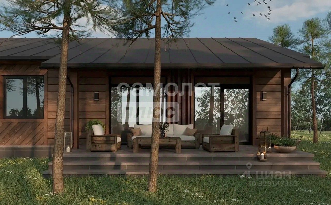 весь участок находится в лесу; выполнен по каркасной технологии с уникальным фасадом из лиственницы.