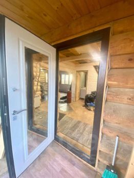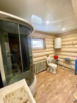 Выполнена разводка труб по дому, закуплены батареи, расширительный бак, электрический водонагреватель, проведена медная электро проводка и выведена в основной блок у входа, так же закуплена вся новая сан техника в санузел - стеклянная душевая кабина, унитаз.