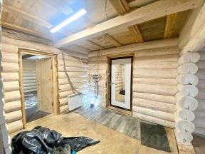Каждый стык в срубе дома между бревнами - бревна 3х3- пройден специальным утеплителем. Каждое бревно отшлифовано трижды и покрыто спецсоставом, который не даст стенам пожелтеть и позволит бревну сохраниться на многие десятилетия.