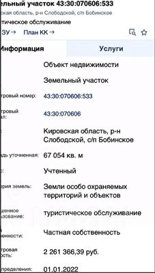 Юридический статус земли - участок рекриационного значения, особо охраняемой территории.