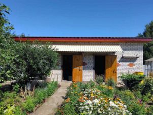 • кирпичная постройка 3,5х10 м- зона отдыха с мангалом, мастерская и кладовая,