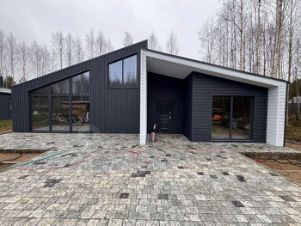 В доме 190 м: 4 спальни, причем одна из них в шикарном мастер-блоке, кухня парадная островная, гостиная с панорамными окнами, лофт-пространство на втором этаже, детская с гардеробной, акцентная лестница с приглашающими ступенями, гостевой санузел. Постирочная/бельевая/котельная.