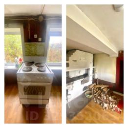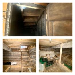В доме на 2-м этаже расположены 2 большие комнаты по- 25 кв м, в которых находится рабочая печь 1,1х1,2 м, мебель, и вход на 1 этаж - на кухню.